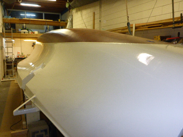 I then put some blue filler on all the spots. In the afternoon I painted the dagger board and some other loose panels and with the rest of the paint I did the back of the hull. I took the painting stuff home to give the tops off the beams also a layer of paint.