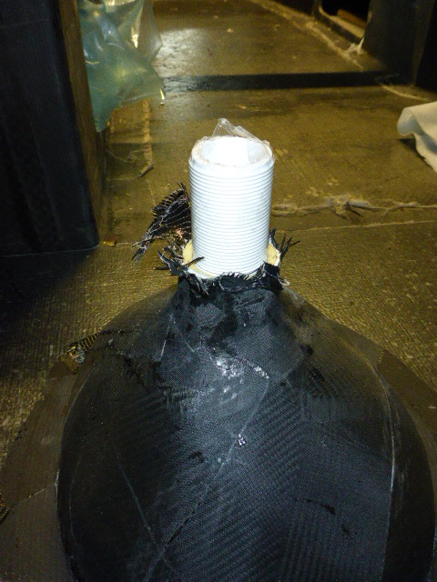I unpacked the panels we laminated yesterday first, they have to harden more before I can grind the edges clean. I than started with the front lockers again, I made the rest of locker out of scrap pieces of foam glued together with PU glue. Tomorrow we put some carbon on it. On the end of the day I put some putty filled in the corners and edges. I glue a thru hull fitting in the toilet bowl with a piece of carbon around it and a piece of foam so the fitting has some body to glue.